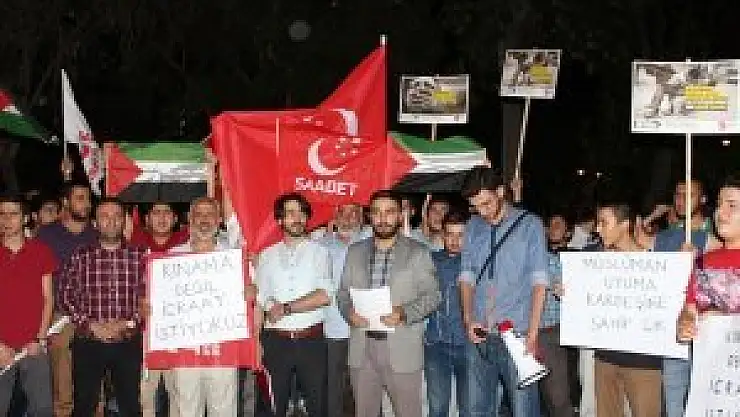 Grup adına açıklama yapan Saadet Partisi İl Gençlik Kolları Başkanı Recep Turan, İsrail'in Gazze'de sivilleri katlettiğini söyledi.