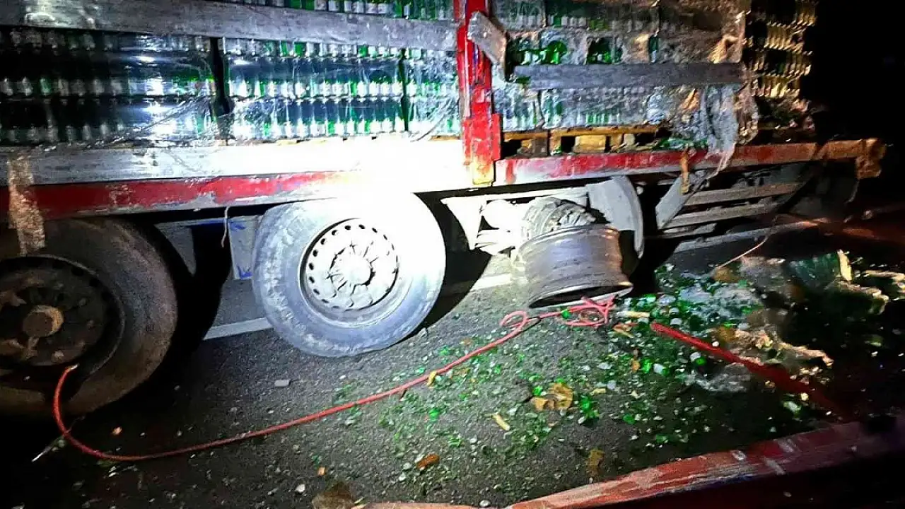 Kaza, Afyonkarahisar-Sivrihisar kara yolunda meydana geldi. Edinilen bilgilere göre; Emirdağ ilçesi istikametinden Eskişehir'in Sivrihisar ilçesi istikametine seyir eden Vural Adar yönetimindeki 16 ARV 605 plakalı maden suyu yüklü tırın lastiği patladı.