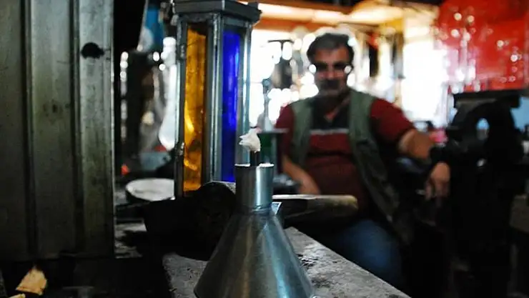 Çetin, AA muhabirine yaptığı açıklamada, 80-100 yıl önce kullanılan kandil ve idare lambalarının benzerlerini işyerinde yaptığını anlattı.
