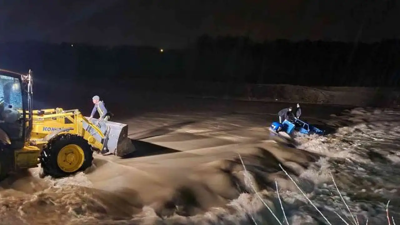 Zonguldak'ın Alaplı ilçesinde pat pat ile geçmeye çalıştıkları çayda su seviyesinin aniden yükselmesiyle mahsur kalan 2 kişi, itfaiye ekipleri tarafından kurtarıldı