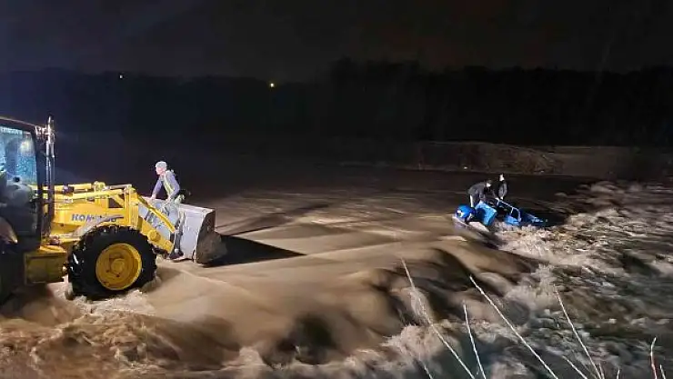 Edinilen bilgiye göre, Recep Türkoğlu (40) idaresindeki pat pat, Mollabey Çayı'ndan geçmeye çalıştığı sırada yağışla birlikte su seviyesinin yükselmesiyle derede mahsur kaldı. Türkoğlu ve yanında bulunan Taha Tarıkan (29), aracın direksiyonuna tutunarak kurtarılmayı bekledi. İhbar üzerine olay yerine jandarma ve itfaiye ekipleri sevk edildi. Halat yardımıyla aracın suya kapılması engellenmeye çalışırken, 2 kişi itfaiye ekiplerinin uzun uğraşları sonucu boğulmaktan son anda kurtarıldı. Sağlık kontrolünden geçirilmek üzere hastaneye gönderilen vatandaşların sağlık durumlarının iyi olduğu öğrenilirken olayla ilgili inceleme başlatıldı.