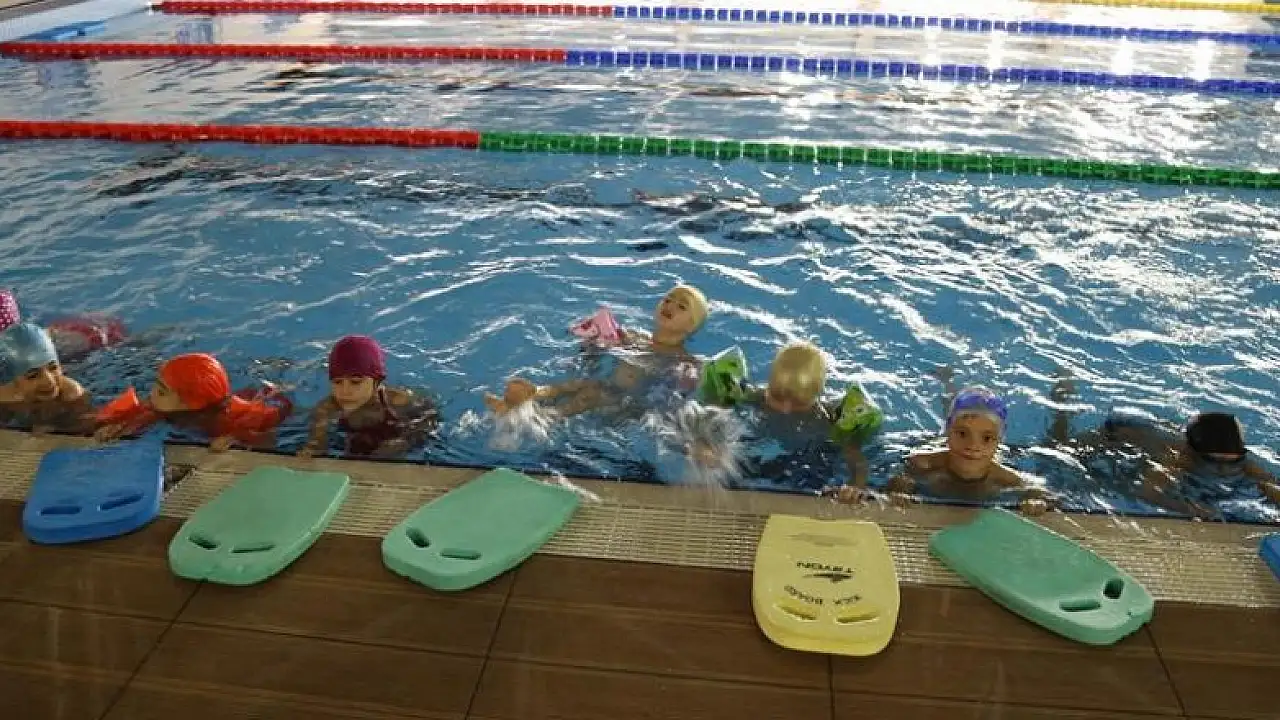 Geleceğin şampiyon yüzücüsü olmanın heyecanıyla kulaç atan çocuklar, denizsiz kentte yüzme öğrenerek ilk defa su sporlarıyla tanışmanın da mutluluğunu yaşıyor.