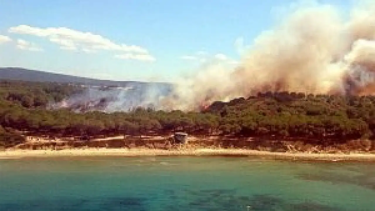 Tarihi yarımadanın Kabatepe bölgesinde henüz belirlenemeyen nedenle çıkan ve rüzgarın etkisiyle büyüyen yangına, helikopter ve arazözlerle müdahale edildi.