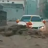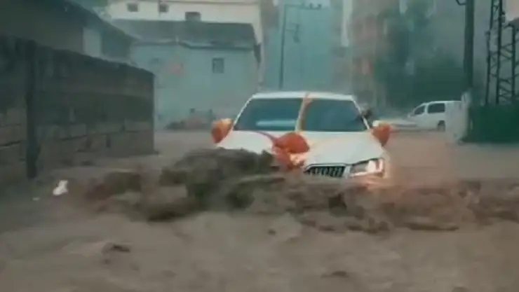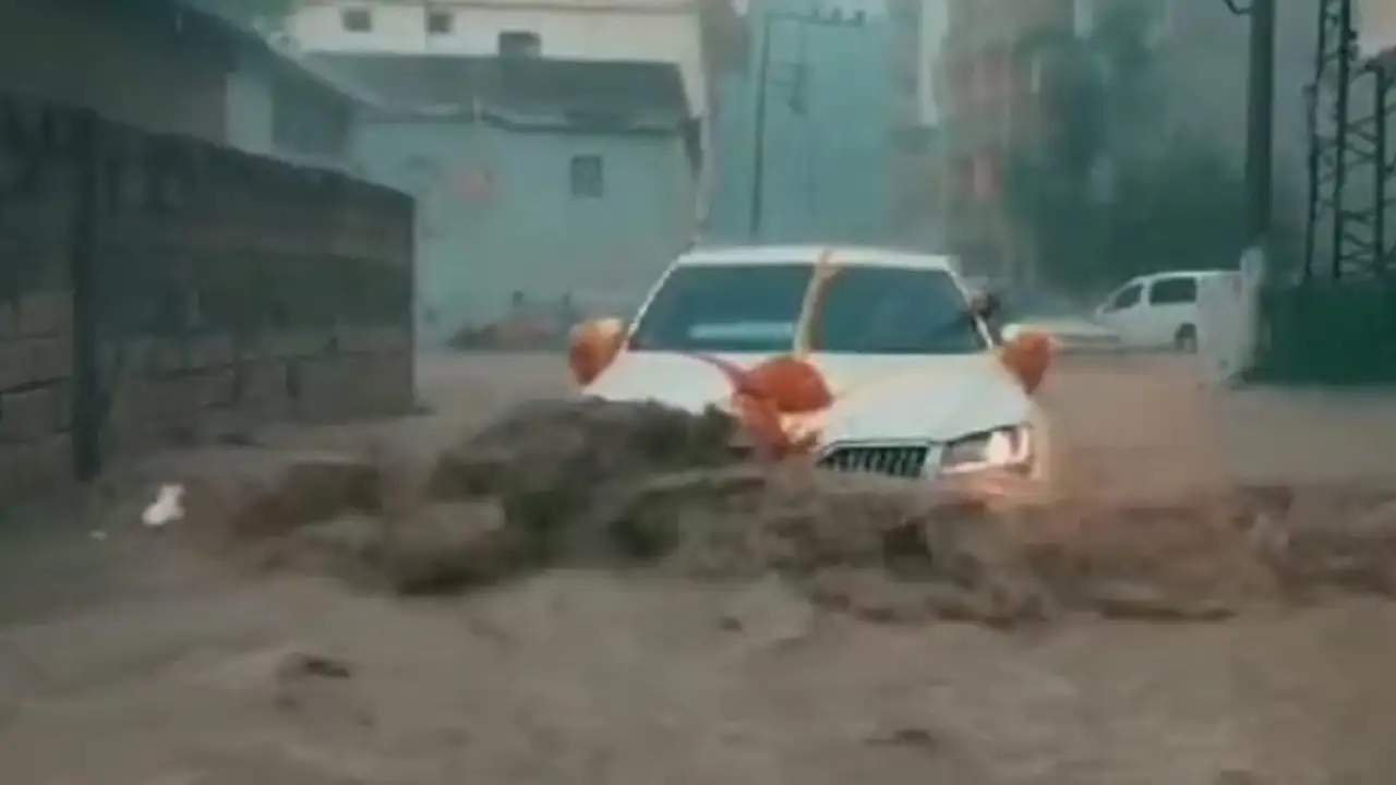 Şırnak'ın Cizre ilçesinde dün etkili olan sağanak, kentte hasara yol açtı. Sel sırasında bir gelin arabası suların ortasında kalırken, su seviyesinin yükselmesiyle sürücü aracıyla ilerleyip kurtulmaya çalıştı.