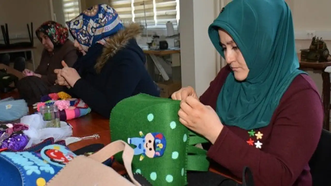 Geçim sıkıntısı çektikleri dönemde aile bütçesine katkıda bulunmak için iş aramaya başladığını anlatan Münevver Kaya, “Eşimin bir arkadaşı KOMEK’i tavsiye etti. Gelip başvurdum. Keçe-aksesuar kursunu seçtim. Hocamız sayesinde birçok teknik öğrendim. Küçük çocuğumla geliyordum. Daha sonra evde kendimi geliştirdim. Bu şekilde meslek sahibi olmaya başladım. Çantaların, yastıkların üzerini süsledim. Keçeden yazılar yazdım. O şekilde keçe benim için bir meslek oldu. Evime ek gelir oluyor, para kazanıyorum. KOMEK’te ürettiğim ürünleri öncelikle çevreme sattım. Para kazanmaya başlayınca bu kez internetten satış yapmaya başladım. Yurt içi ve yurt dışına Gaziantep, İstanbul gibi yerlere kargo yoluyla gönderdim. KOMEK sayesinde meslek sahibi oldum. Evime ek gelir sağlıyorum. Çocuklarımın ihtiyaçlarını karşılıyorum. Hatta bir ev hanımı olarak birikim bile yapıyorum” dedi.