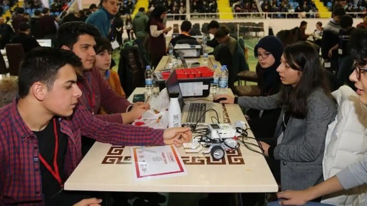 Atölyede tasarım üretim ve robotik kodlama gibi alanlarda eğitim alan 160 öğrenci, Palandöken Kapalı Spor Salonu'nda düzenlenen proje şenliğinde takımlar halinde çalışmalarını sergileyip, tasarladıkları robotlarla matlar üzerinde belirlenen görevleri tamamlamaya çalıştı.