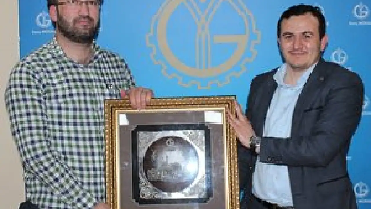 Programın sonunda Genç MÜSİAD Konya Şube Başkanı Emre Babayiğit, Hasan Yaşar’a günün anısına hediye takdim etti.