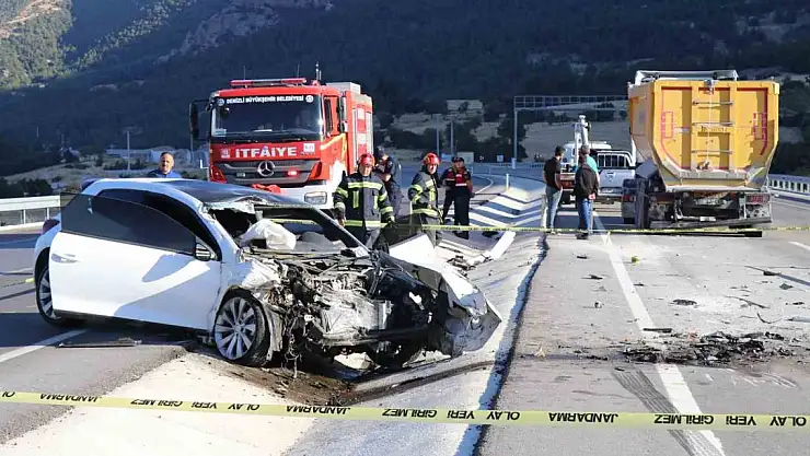 Denizli'nin Pamukkale ilçesinde çevreyolunda önünde ilerleyen hafriyat kamyonuna arkadan çarpan otomobilin genç sürücü hayatını kaybetti.