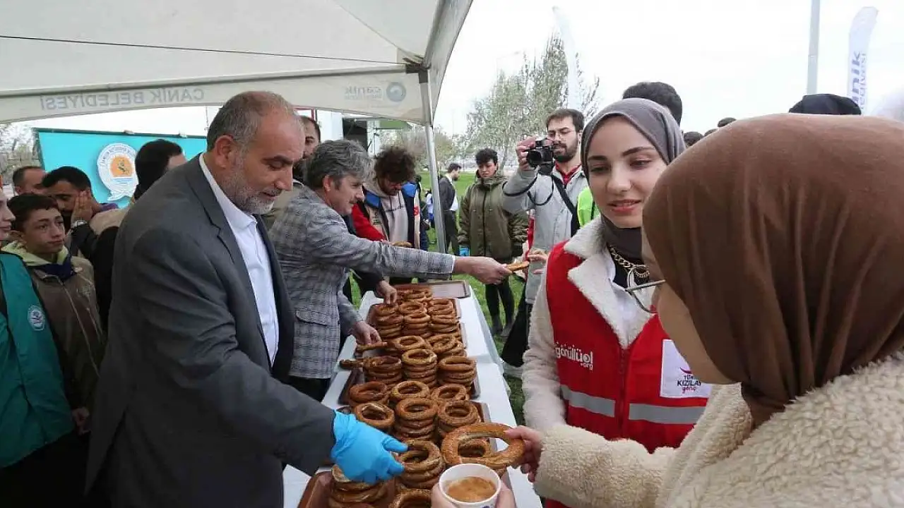 Canik Belediye Başkanı İbrahim Sandıkçı, yüzlerce gönüllünün katıldığı etkinlikte gençlere simit ve salep ikram etti.