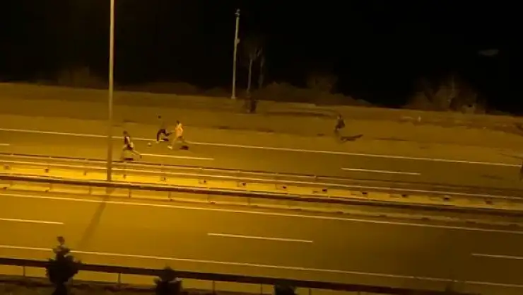 Gençlerin karayolundaki tehlikeli oyunu kamerada