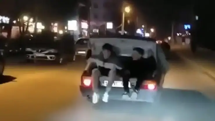Bir süre böyle giden gençler trafikteki başka bir sürücünün cep telefon kamerasına yansıdı.