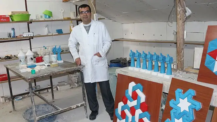 Konya'da üniversitede güvenlik görevlisi olarak çalışan seramik sanatçısı Abdulbaki Ünal, evinin çatı katında Selçuklu ve Osmanlı izlerini taşıyan üç boyutlu seramik ürünler tasarlayarak imalatını yapıyor.