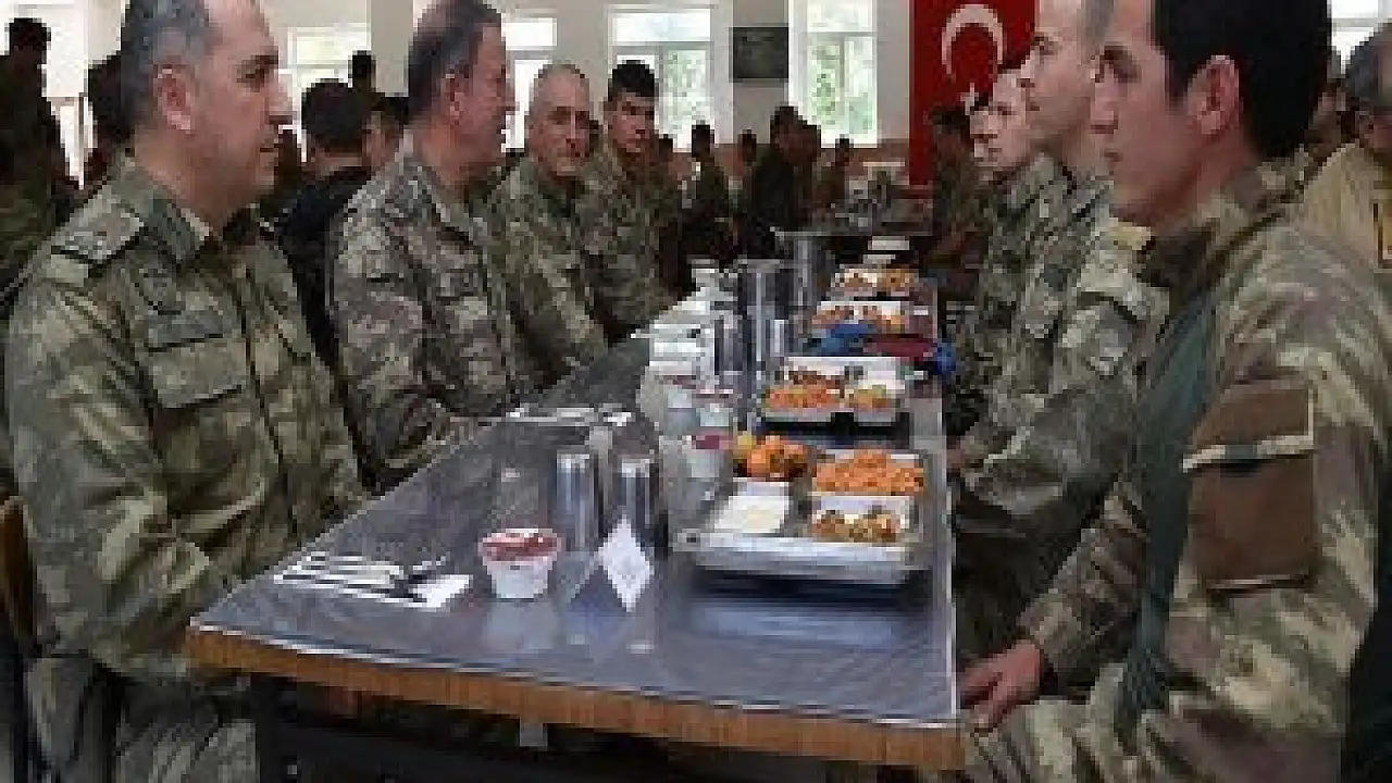 Akar, bölgedeki operasyonlarda görevlerini büyük bir kahramanlık ve fedakarlık örneği göstererek yerine getiren güvenlik güçleri ile görüştü, Sayın Kışlasında onlarla birlikte yemek yedi.