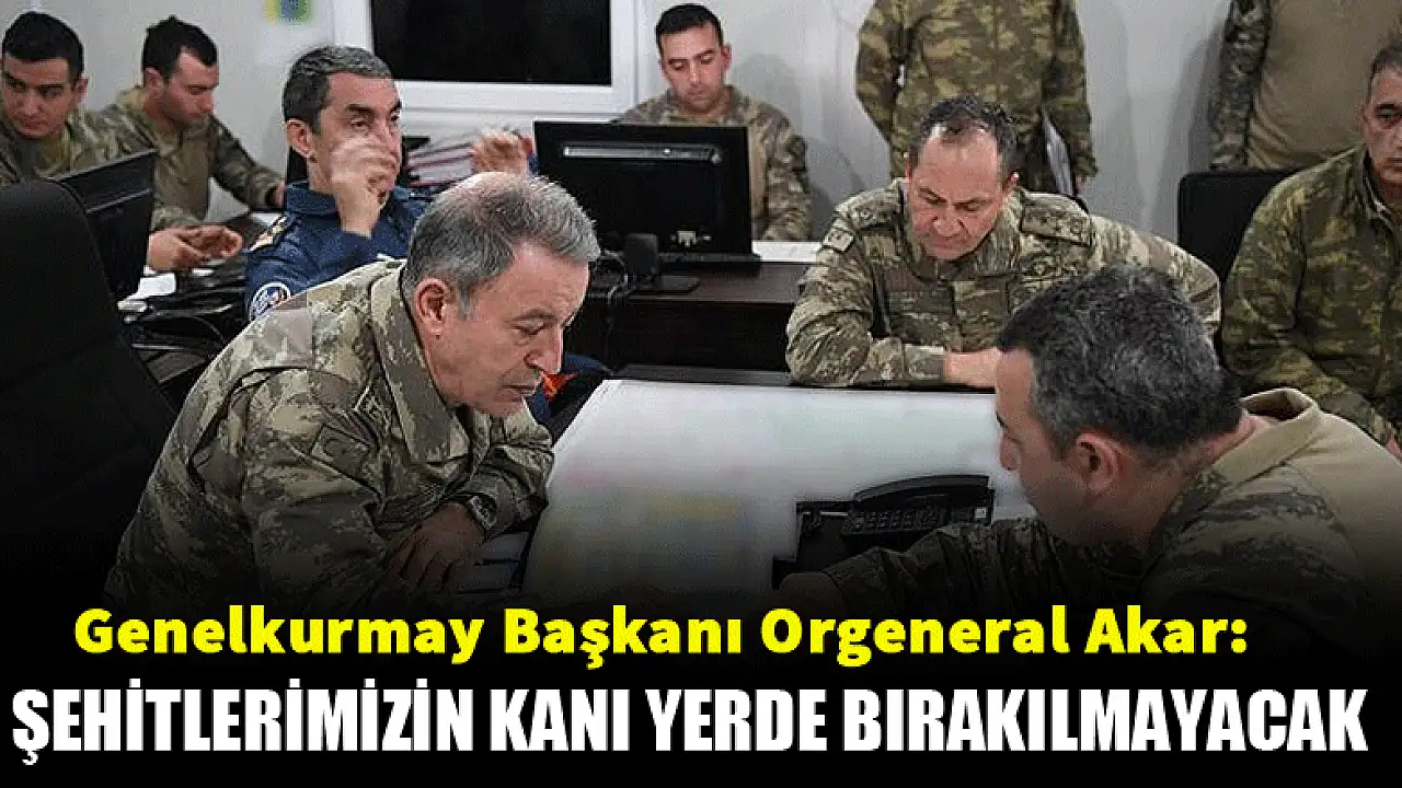 Genelkurmay Başkanı Orgeneral Akar, 'Şehitlerimizin ve gazilerimizin tek bir damla kanı dahi yerde bırakılmayacak.' değerlendirmesinde bulundu.