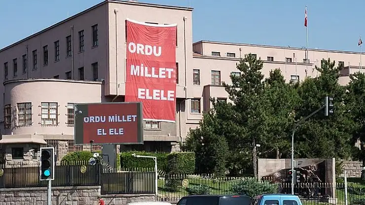Fetullahçı Terör Örgütü (FETÖ) üyelerinin darbe girişiminin ardındanGenelkurmay Başkanlığı Karargahına Türk bayrağı ile "Ordu millet el ele" ve "Hakimiyet milletindir" yazılı büyük boy afişler asıldı.