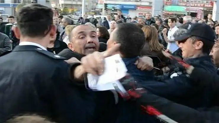 Ardından alanladaki bazı kişiler öfkelenerek, Yıldız'ın üzerine yürüdü. Tören alanında bulunan polisler, Yıldız'ın yaka paça yakalayıp ağzını kapatarak kalabalığın elinden kurtardı. Polis aracına bindirilen Yıldız, Emniyet'e götürüldü.