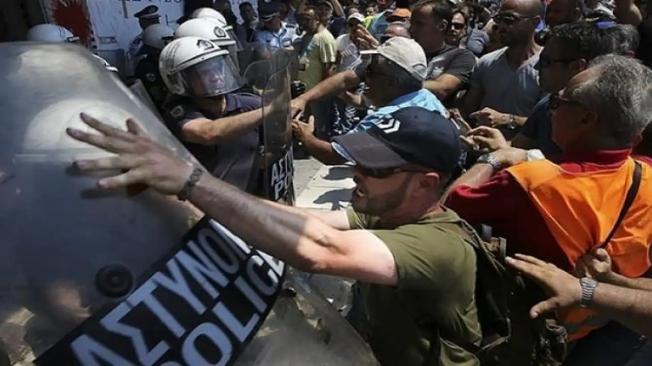 Polisler İçişleri Bakanı Skourletis ile görüşme talebinde bulundu, arbede yaşandı.