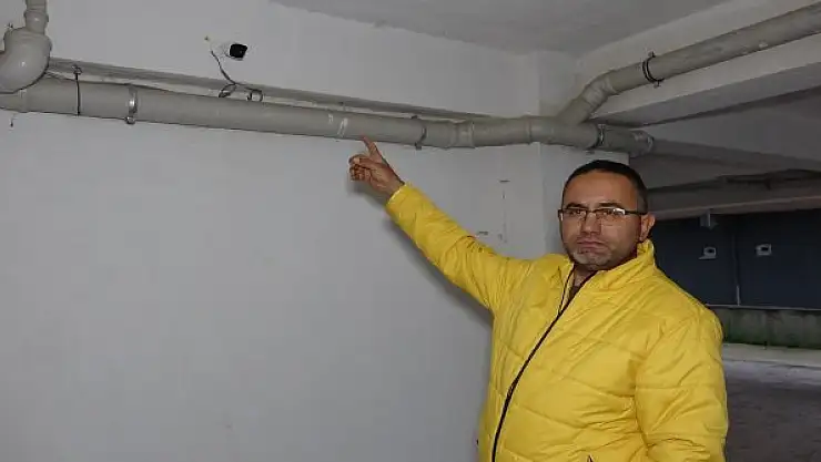 Getirdiği sandalyeye çıkarak sitenin güvenlik kamerasını çaldı