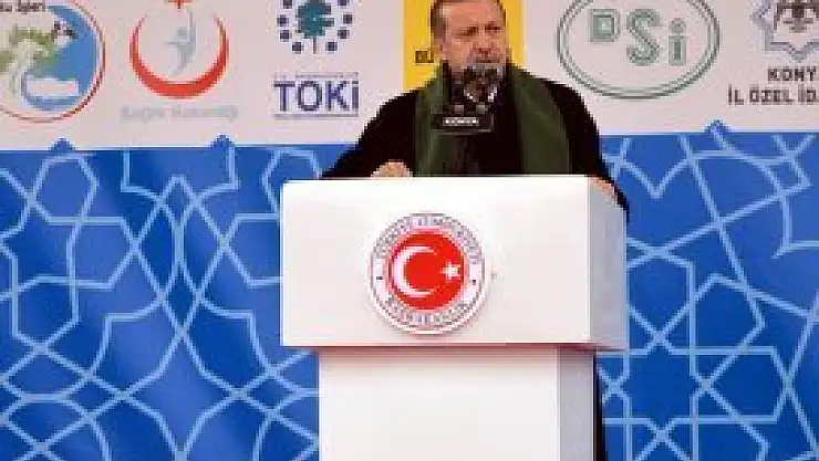 Erdoğan TOKİ eliyle yapılan ve hizmete açacağı yatırımları anlatıyor. Belediyelerin Konya'ya büyük hizmetler kazandırdığını söyleyen Erdoğan yapılan hizmetlerin hayırlı olmasını diledi.