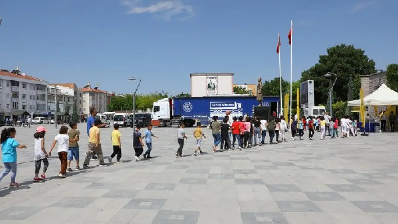 Kültür ve Turizm Bakanlığı'nca başlatılan Gezen Sinema TIR'ı, Karapınar Belediyesi ev sahipliğinde öğrencilerle buluşmaya devam ediyor.