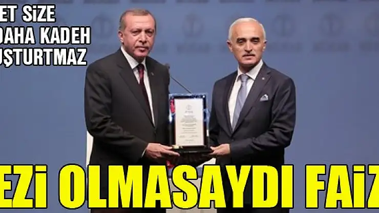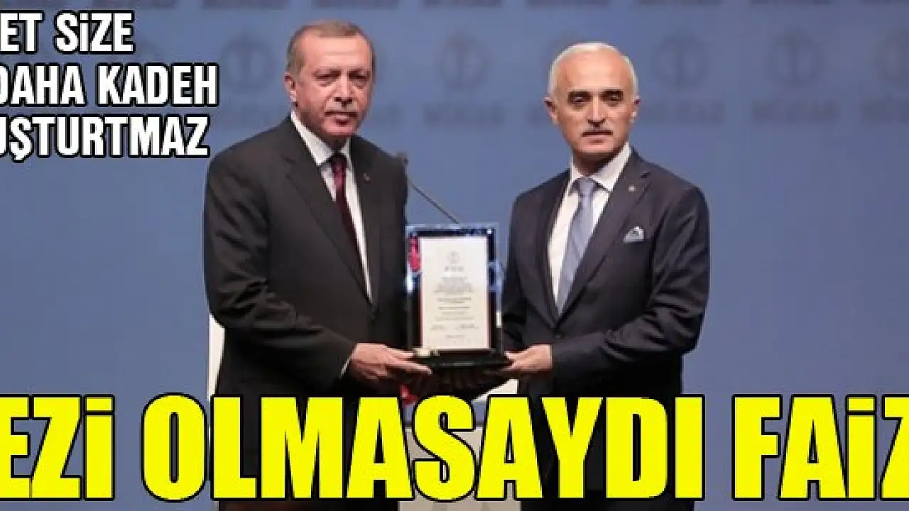 Kendileri ülke çıkarı ve menfaati için gayret sarfetmesine rağmen, aynı kesimlerin hala kendilerine bent oluşturma gayretinin içinde oldukların vurgulayan Erdoğan, “Niye biliyor musunuz? Sadece taşıdığımız kimlik sebebiyle. Tüm mesele bu” dedi. Faizin hiçbir zaman ülkenin yararına olmadığını ve olmayacağını belirten Erdoğan, şu örnekleri verdi: “ABD, Batı, Japonya bu işi hiç bilmiyor mu? Bunlar 1 puan eksi faiz uygulamasını yaparken bize ne oluyor da şöyle aralığa baktığımız zaman 11 civarında, komisyonlar 15-16-17-18'lere kadar çıkıyor. Bu ülkede Allah aşkına yatırım olur mu?Hangi mantık, hangi anlayış hala kalkıp da 'Biz faizi artıralım' diyerek bunun kovalayanı oluyor."