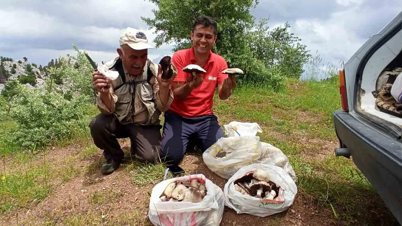 Seydişehir'den Giden Gelmez Dağlarına mantar toplamaya giden Muammer Acıyan ve Mehmet Acıyan her yıl bu mevsimde mor mantar olarak bilinen ve marketlerde de satılan kültür mantarını toplamaya geldiklerini söyledi.