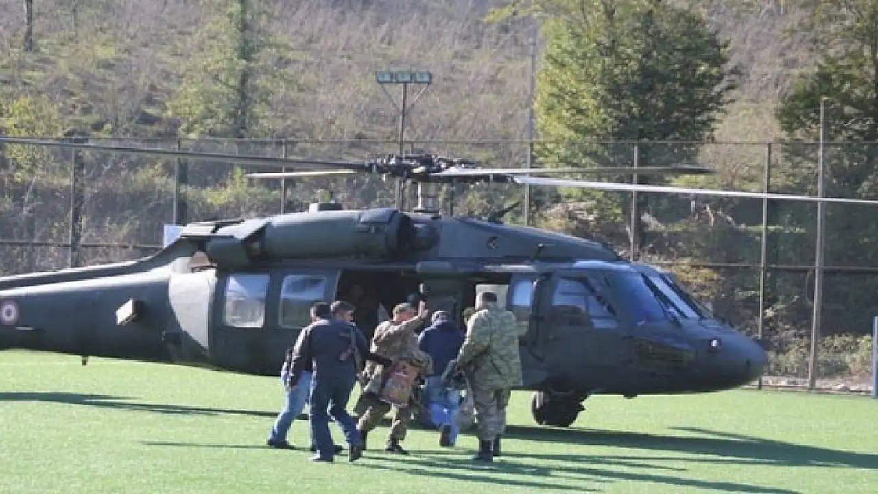 Dün Yağlıdere ilçesinde 1. Amatör Küme'de mücadele eden Yağlıderespor ve Doğankentsporlu futbolcular maç öncesi hazırlık yaptığı sırada ilçe stadına inen helikoptere binen rütbeli komutanlar bölgeyi havadan inceledi.