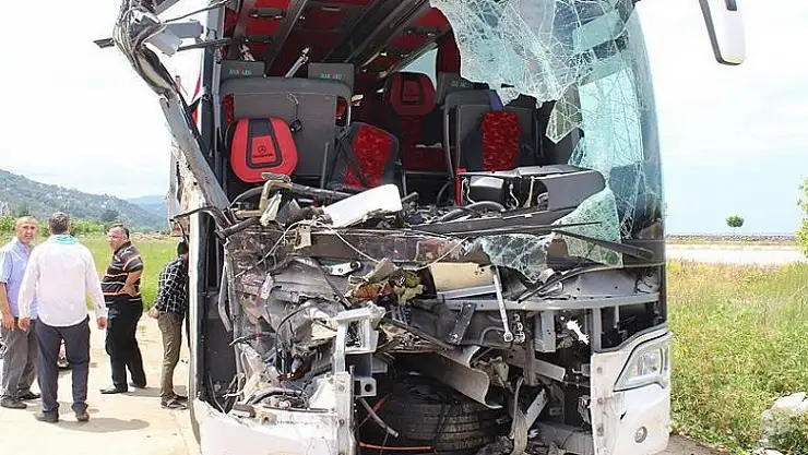 Otobüsün bariyerlere çarparak durabildiği kazada, aracın muavini Hamdi Özbaş (28) olay yerinde hayatını kaybetti.