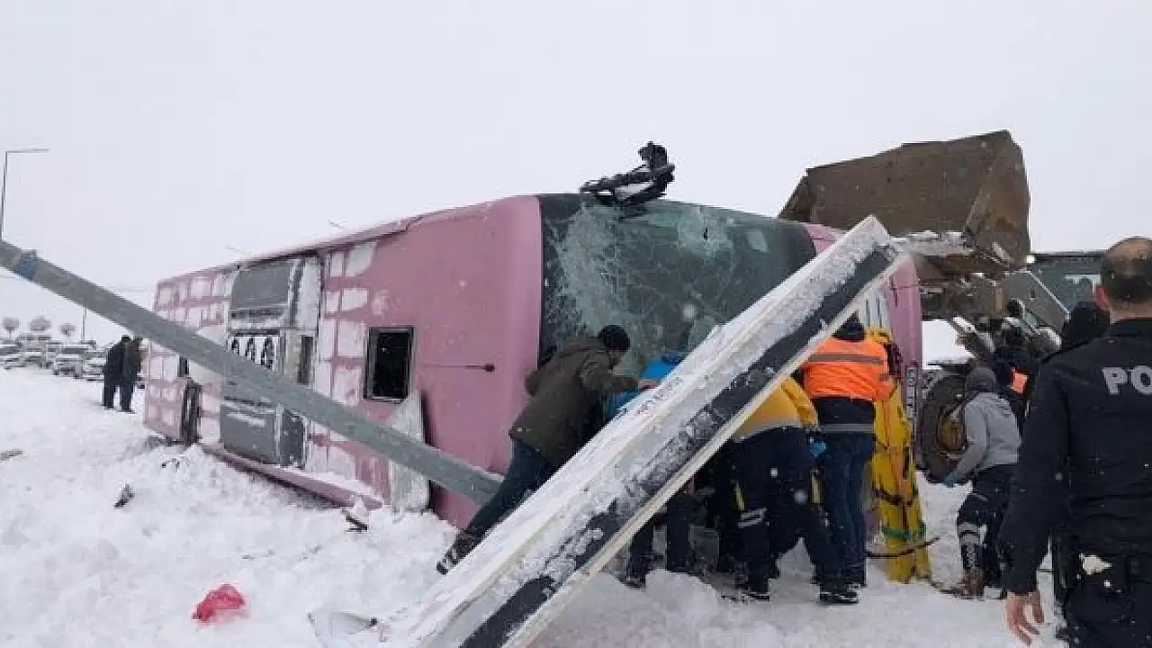 Giresun'un Şebinkarahisar ilçesinde bugün bir yolcu otobüsü karlı ve buzlu yolda kontrolden çıkarak şarampole yuvarlandı.