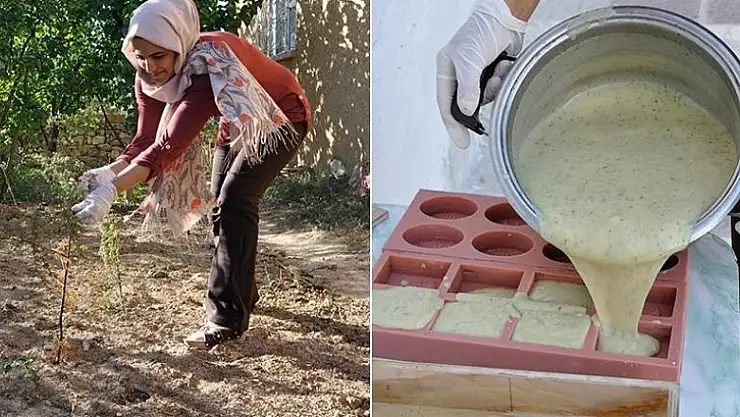 Konya'da, Büyükşehir Belediyesinin başlattığı proje ile kırsal kesimde yaşayan kadın girişimciler, bahçe ve tarladan topladıkları çeşitli otları üretim sürecine katarak doğal sabun elde ediyor.