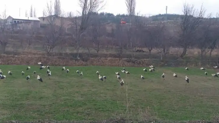 İlkbahar mevsiminin gelmesi ve havaların ısınması ile birlikte daha sıcak ülkelere göç eden leylekler, geldikleri Türkiye'de Konya'nın Derbent ilçesinde sürüler halinde tarlalarda görüldü.