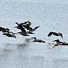 Dün ikindi saatlerinde İvriz Barajı'na inen kuş sürüsü, burada bir gece dinlenme ve beslenme molasının ardından, sabahın ilk ışıklarıyla toplu halde yeniden havalanarak güneydoğuya doğru göç yolculuklarına devam etti.