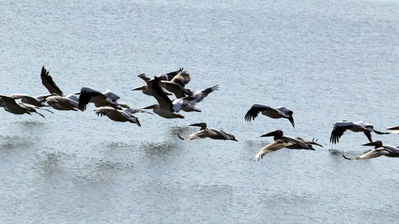 Göç yolundaki pelikan sürüsü İvriz Barajı'nda mola verdi