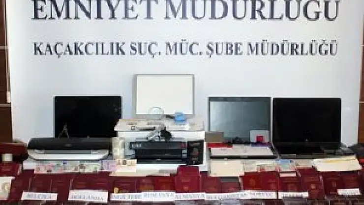 Düzenlenen operasyonda, göçmenlerin yurt dışına kaçmalarına yardımcı olduğu iddia edilen 1’i Suriyeli toplam 8 kişi gözaltına alındı. Adreslerde yapılan aramalarda ise aralarında Fransa, Belçika, Hollanda, ve Suriye’nin de bulunduğu ülkelere ait bin 50 adet orijinal boş pasaport, 33 kimlik kartı ve ehliyet, 200 boş uçuş kartı, Atatürk Havalimanı ve Sabiha Gökçen Havalimanı'na ait 10 mühür, pasaport orjinalliğini anlamak için mor ışık, 1 tabanca ve bilgisayarlar ele geçirildi.