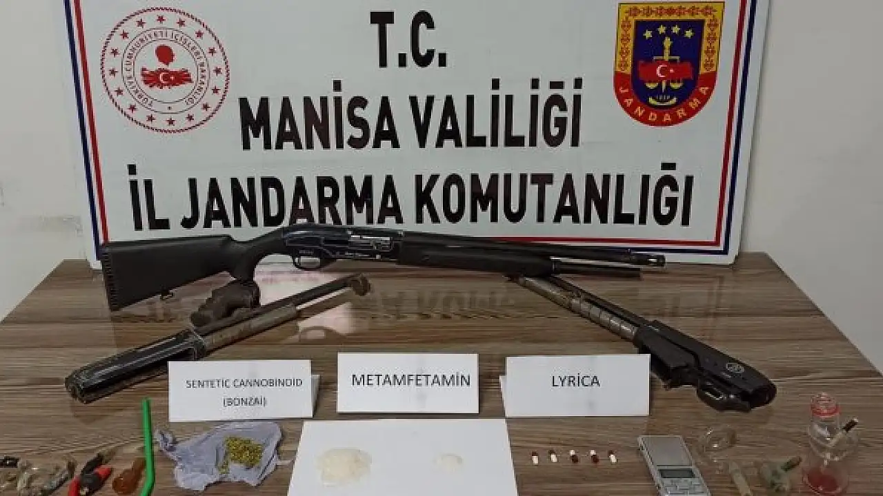 Uyuşturucu veya Uyarıcı Madde İmal ve Ticaretini yapan şahıslara yönelik çalışmalarını sürdüren Salihli İlçe Jandarma Komutanlığı ekipleri, Taytan Mahallesi'nde yaşayan M.G.'nin (29) uyuşturucu madde ticareti yaptığını tespit etmesi üzerine harekete geçti. Salihli Sulh Ceza Hâkimliğinden alınan arama kararına istinaden Salihli İlçe Jandarma Komutanlığı, Manisa İl Jandarma Komutanlığı İstihbarat, Kaçakçılık ve Organize Suçlarla Mücadele Şube Müdürlüğü ve Narkotik Köpek Timi ile birlikte şüpheli M.G.'ye ikamette yapılan aramada 22 gram metamfetamin, 2 gram bonzai, 5 adet sentetik ecza hapı, 9 adet uyuşturucu kullanma aparatı, 1 adet hassas terazi, 3 adet ruhsatsız av tüfeği ile 2 adet çalıntı motosiklet ele geçirildi.