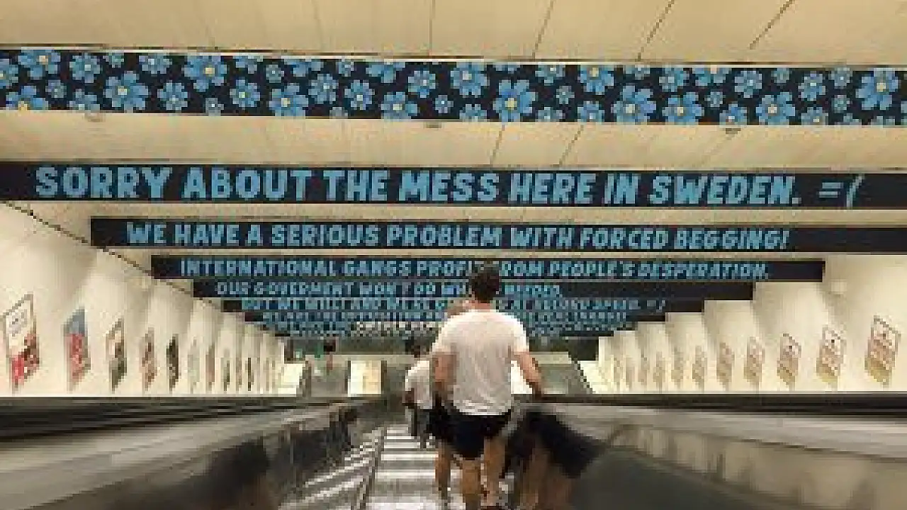 Aşırı sağcı ve göçmen karşıtı İsveçli Demokratlar Partisi, metrolara verdiği reklamda, sokaklarda dilencilik yapanlar nedeniyle ülkeye gelen turistlerden özür diledi.