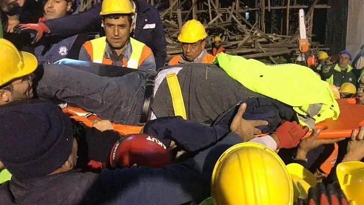 Daha sonra sedyeye alınan ve elden ele taşınarak inşaat girişindeki ambulansa getirilen Küçükcan, hastaneye kaldırıldı.