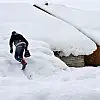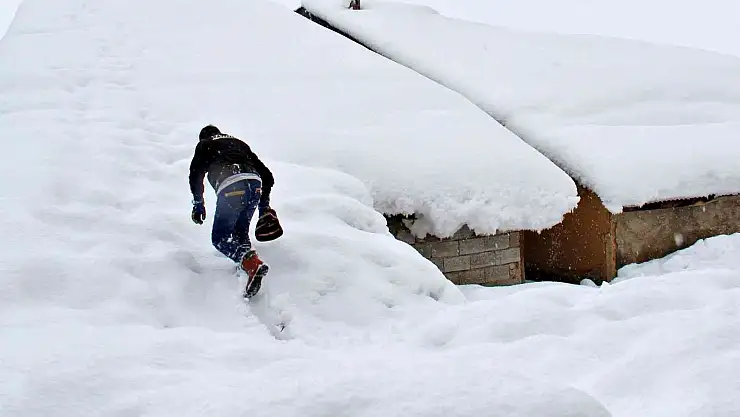 Kahramanmaraş'ın Göksun ilçesinde kar kalınlığı 2 metreye ulaşınca, tek katlı evler ve ahırlar karla kaplandı.