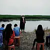 Göl kıyısında Nasreddin Hoca ile kitap okudular