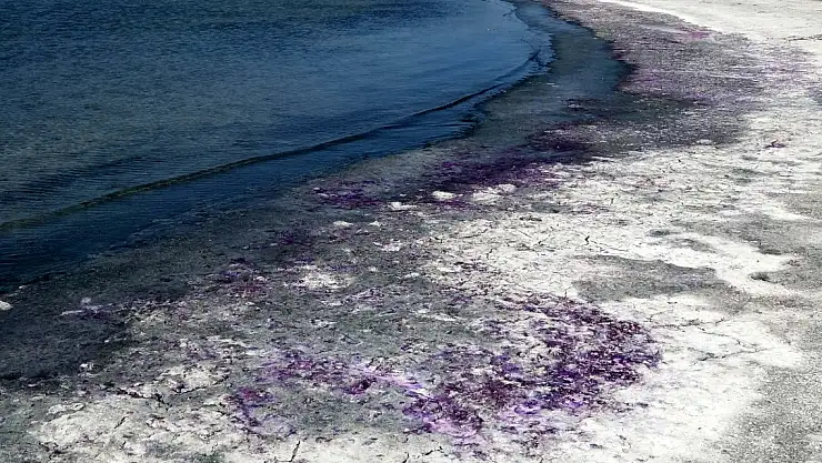 BURDUR Gölü'nde sahilin bazı kesimleri mor renge büründü. Hidrobiyolog Prof. Dr. İskender Gülle, bu görüntüye mor renkli sülfür bakterilerinin yol açtığını ve herhangi bir zararı olmadığını söyledi.