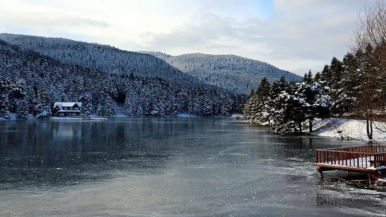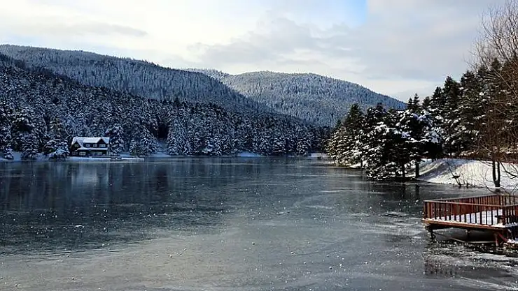 Kente yaklaşık 13 kilometre uzaklıktaki doğal güzelliğiyle ünlü Gölcük Tabiat Parkı'nda bulunan göl de düşük hava sıcaklığının etkisiyle tamamen buz tuttu.