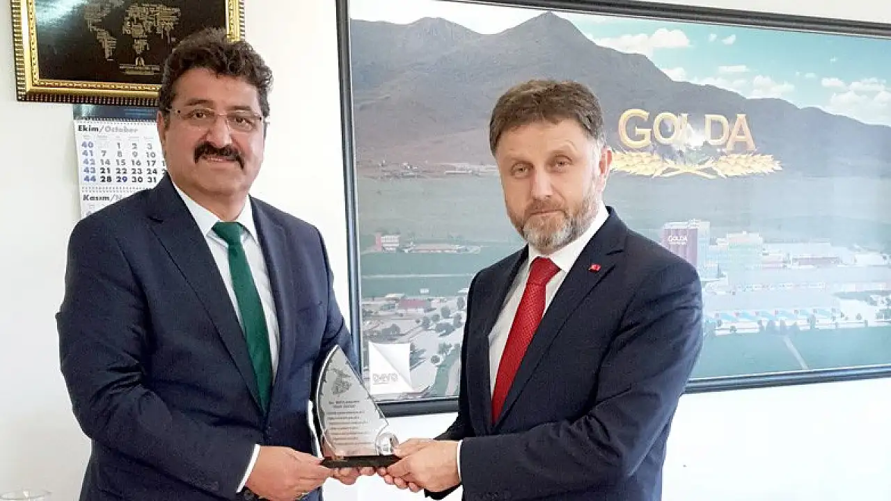 Tesisleri gezen Poyraz, üretim kalitesinden duyduğu memnuniyeti belirterek, Golda Gıda Genel Müdürü Fatih Doğan’a teşekkürlerini iletti. Doğan’da, Dr. Fahrettin Poyraz’a Mevlana’nın yedi öğüdünü içeren teşekkür plaketi takdim etti.