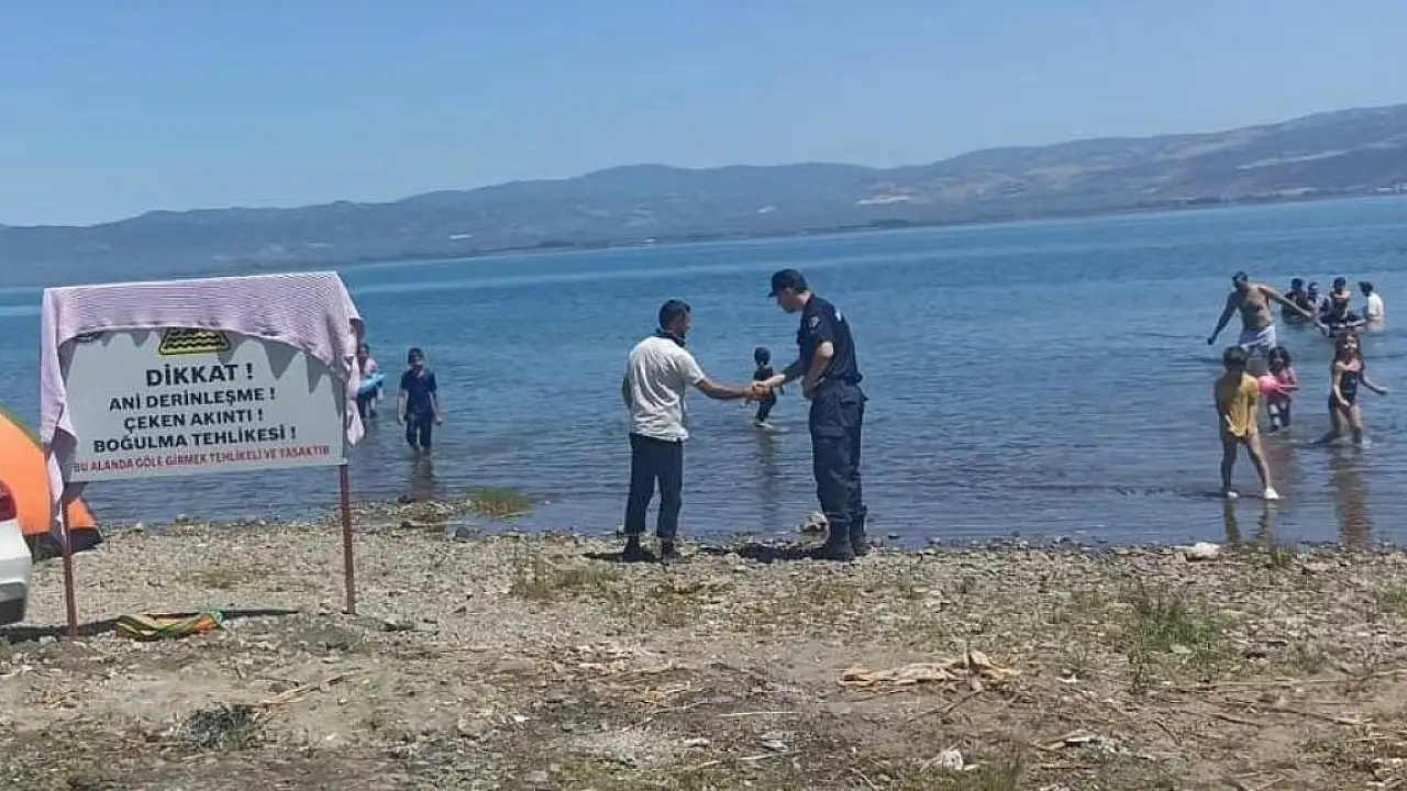 İznik Gölü'nün en tehlikeli bölgesi olan ve 3 yıl içinde 32 kişinin boğulduğu alanda kuralları çiğneyen vatandaşlar, girilmez tabelasına havlu asıp yüzmeye devam etti.
