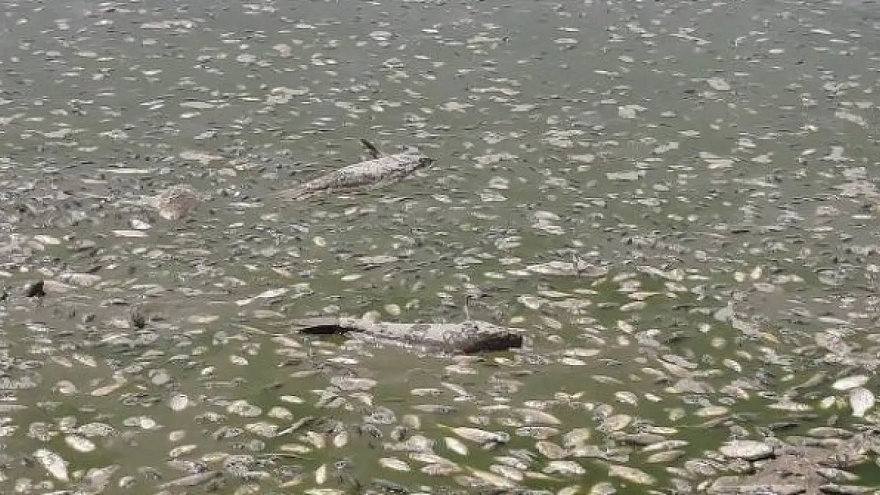 Mardin'in Mazıdağı ilçesinde uzun süre boyunca yağış alamayan ve dip kısmında sızma olan gölette su seviyesinin düşmesi nedeni ile binlerce balık telef oldu.