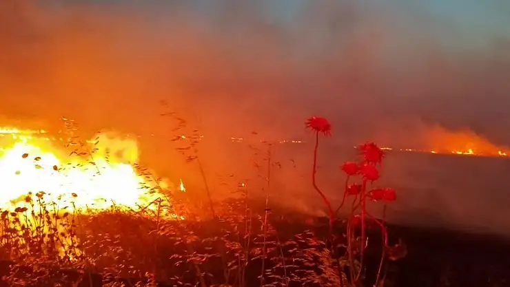 Gönen'de anız yangını, 60 dönüm yer kül oldu