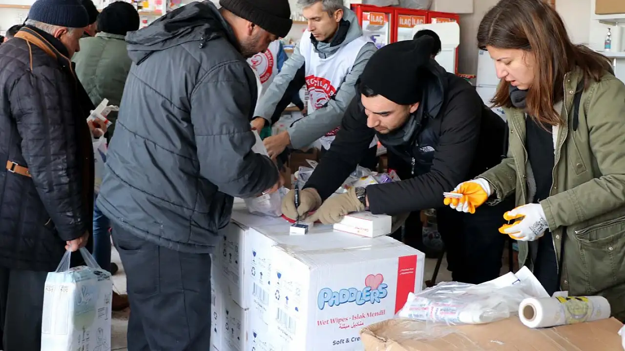 Kahramanmaraş'ın Elbistan ilçesinde gönüllü eczacılar, Türkiye'nin dört bir yanından getirdikleri ilaçları depremzedelere ücretsiz veriyor.