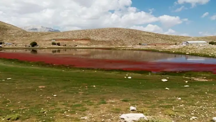 Görenler inanamadı! Göl kırmızıya boyandı