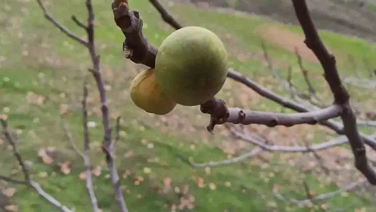 İlçeye bağlı Yeşilyöre Mahallesi'nde soğuk havaya dayanıksız olan incir ağacı, yapraklarını dökmesine rağmen meyve verdi.