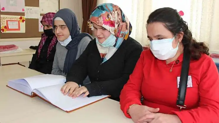 Amasya'da görme engelli 4 kadın Kur'an-ı Kerim okumayı öğreniyor.