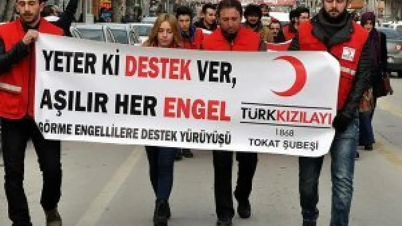 7-14 Ocak Beyaz Baston Körler Haftası dolayısıyla Niksar yolu kavşağında bir araya gelen Türk Kızılayı Tokat Şubesi Gençlik Kolları üyeleri, "Yeter ki destek ver, aşılır her engel" yazılı pankart açarak yürüyüşe geçti.